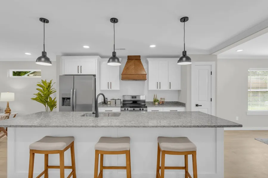 Completely Remodeled in the Heart of East Ridge! This 4-bedroom, 2-bath home has been fully gutted to the studs and thoughtfully rebuilt with modern comfort in mind. Step inside to find beautiful hardwood floors throughout the main living areas, accented by LED can lighting for a bright and welcoming feel. The spacious kitchen is the centerpiece of the home, featuring a large kitchen island and plenty of room for gathering. The adjoining dining area is flexible enough to serve as two separate spaces-ideal for entertaining or creating a cozy breakfast nook. Both bathrooms have been fully updated with tiled showers, including a luxurious rain shower head in the primary suite. Enjoy relaxing mornings and evenings outdoors with a brand new deck perfect for grilling and a charming rocking chair front porch that also features a beadboard ceiling. This home blends the charm of East Ridge with the comfort of modern updates-making it truly move-in ready.