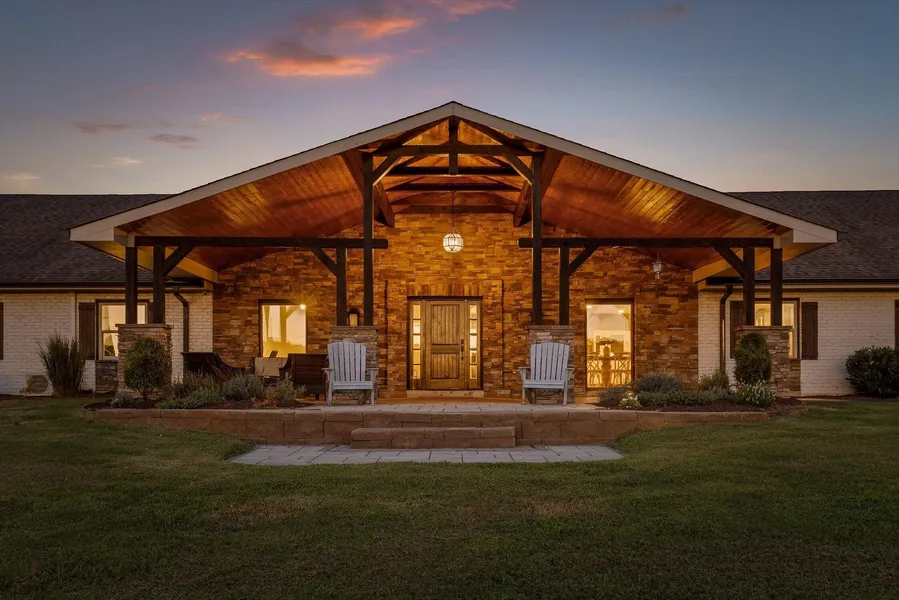 Welcome to your secluded estate, where convenience meets beauty. Located at 2120 Ooltewah Ringgold Road, this inviting home has everything you need on the main level and features an attached apartment, barn, workshop, pool, and tennis court. As you walk inside, you're greeted by the natural light that radiates through the expansive windows. The dedicated dining area allows for many people to gather around and create lasting memories. The cream cabinets bring warmth to the kitchen that boasts stainless steel appliances, granite countertops, and double ovens. Off of the kitchen you will find the pantry and an oversized laundry room with ample storage. The living room is anchored by the wood burning fireplace and is the perfect place to unwind while taking in the mountain view. The oversized primary bedroom enjoys its own exit to the patio fire pit, while the bathroom includes double sinks,...