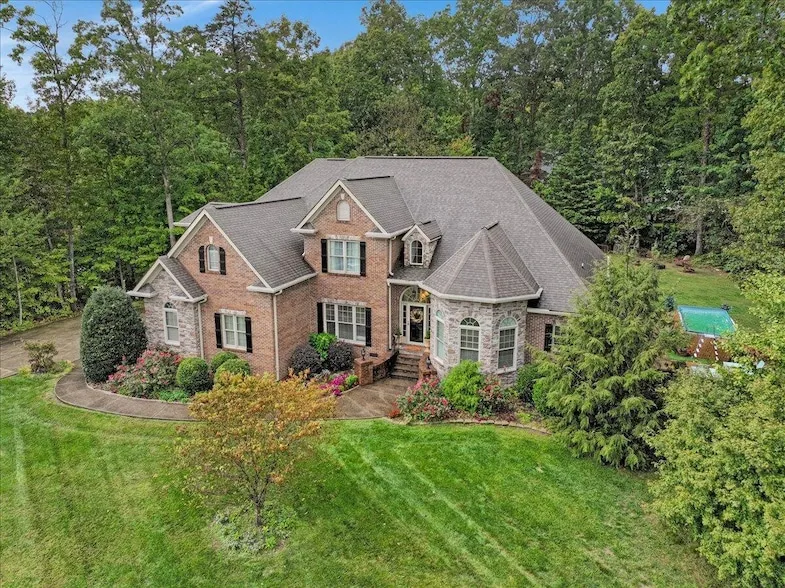 Welcome to 3349 Cloudcrest Trail, located in Fox Run's prestigious Bluff Creek. This stunning brick and stone residence makes everyday living feel like a retreat. Perfectly positioned just minutes from Nolan Elementary and Signal Mountain Middle/High, this mountaintop community is celebrated for its award-winning schools, local dining, boutique shopping, and small-town charm. Set on 1.02 level acres, this 5 bedroom, 4.5 bath home offers 4,800 sq. ft. of meticulously cared-for space. The main level greets you with a soaring foyer, hardwood floors, and formal and casual living areas. The upgraded kitchen serves as the heart of the home with double ovens, gas cooktop, center island, pantry, and breakfast nook connecting to the living room and all-season sunroom with fireplace. The spacious primary suite includes dual closets and a spa-like bath, while a guest suite on the opposite wing of the main level creates ideal in-law or guest quarters. Upstairs you'll find three additional bedrooms with walk-in closets, jack-and-jill baths, and a generous bonus room plus walk-out attic/storage rom. Outside, enjoy the composite deck living area, fenced backyard, stone paths, and a large side patio perfect for year-round entertaining, seasonal pool use and outdoor living space. A 3-car garage, manicured grounds, utility shed, and no HOA complete the package. Experience luxury living in one of Signal Mountain's most convenient neighborhoods. Schedule your private showing today-this one is priced to sell!
