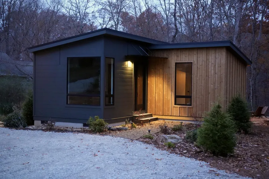 Discover a truly unique modern residence on Signal Mountain, designed and built by a local company with an emphasis on craftsmanship, efficiency, and style. Set on just over an acre, this property offers a beautiful balance of landscaped open space and wooded privacy, with a serene creek along the back edge. Inside, the open-concept living space features warm wood finishes, high ceilings with exposed beams, and large windows that flood the home with natural light while framing peaceful forest views. The designer kitchen blends function and aesthetics with custom cabinetry, a spacious island, and stainless steel appliances. Both bedrooms are thoughtfully designed with built-in storage and minimalist luxury in mind. Enjoy effortless living with a low cost of ownership thanks to the home's energy-efficient design and high-quality construction. The outdoor fire pit area and surrounding natural landscape make it ideal for both quiet evenings and entertaining guests. Perfect as a full-time residence or an income-producing vacation rental, this home combines the tranquility of Signal Mountain with the convenience of being just minutes to Hixson and a short drive to downtown Chattanooga. Pictured furnishings are negotiable for a turnkey option.
