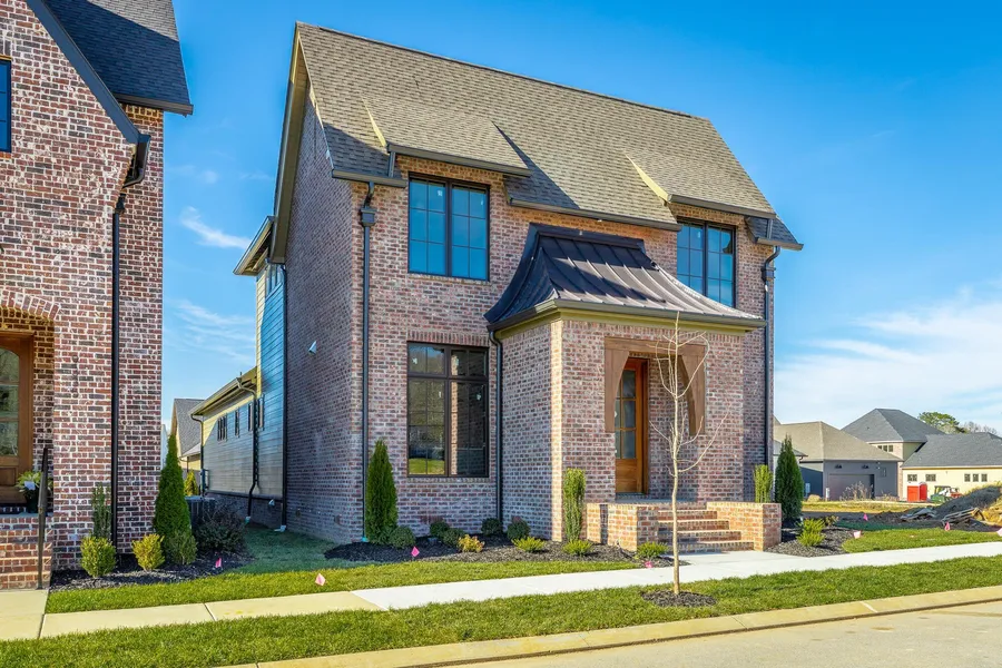Waters-Holland unveils The Winslow - an entirely new, never-before-built English Craftsman design that captures the timeless charm and thoughtful craftsmanship the builder is celebrated for. At 2,172 square feet, this inviting three-bedroom, two-and-a-half-bath home welcomes you with graceful proportions, elevated ceilings, and an effortless flow that feels both luxurious and livable. Step through the front door beneath authentic inset wood timbers and you're greeted by soaring 10-foot ceilings, engineered hardwood floors, and natural light provided by an abundance of aluminum-clad windows. The open living plan feels airy yet intimate, with views of White Oak Mountain visible from the kitchen, great room, and dining. Custom cabinetry throughout provides smart storage in this compact, but thoughtfully designed home. At the heart of the home, the kitchen is a dream for both everyday living and entertaining. A spacious central island anchors the space, surrounded by floor-to-ceiling custom cabinetry, quartz countertops, and premium Fisher & Paykel stainless-steel appliances-including a 36-inch professional gas range and seamlessly integrated dishwasher. A walk-in pantry keeps everything beautifully organized and within reach, while the kitchen flows openly to the great room and dining room. A generous covered porch-perfect for morning coffee- is accessible from the living area near the dining room. The main-level primary suite is a serene retreat, featuring a vaulted ceiling, direct access to the covered porch through sliding glass doors, and a spa-inspired ensuite bath with a large tiled shower, dual-sink vanity, private water closet, and walk-in closet with custom shelving. Upstairs, two generously sized secondary bedrooms share a well-designed full bath, while the expansive open loft offers endless flexibility-whether you envision a home office, media room, playroom, or cozy den. Thoughtful walk-out attic storage keeps seasonal items neatly tucked away. If outdoor living is important to you, you'll appreciate the screened covered porch that leads to a private concrete patio and fenced side yardideal for pets or light gardening. Brick steps gracefully connect the spaces, blending indoor and outdoor living with ease. The exterior combines low-maintenance painted brick with durable fiber-cement siding and timeless architectural details that honor classic English Craftsman style. Currently nearing completion and expected to be ready for move-in by the end of December 2025 or January 2026, this is a rare opportunity to secure a brand-new, never-lived-in Waters-Holland home just in time for the new year. Grantham Square is an intimate, Waters-Holland enclave that will ultimately comprise just 50 thoughtfully curated residencesVilla, Manor, and Estate designseach reflecting the community's signature elegance and attention to detail. Current homes are priced from the mid-$700,000s to $2.4 million.