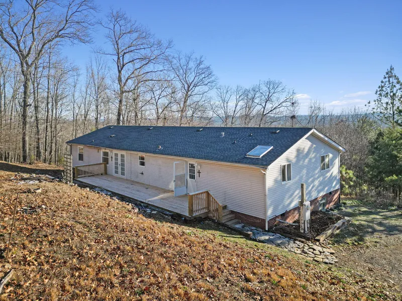 Don't miss this one-of-a-kind property! Situated on 6.72 private acres, this one-level home offers breathtaking views and total seclusion. With 1,944 square feet, the layout features four spacious bedrooms and two full bathrooms, along with an open-concept kitchen, dining, and great room-perfect for both everyday living and entertaining. The kitchen includes stainless steel appliances and convenient breakfast bar seating. The expansive primary suite boasts a large bedroom and an ensuite bath with a double-sink vanity and an accessible soaking tub beneath a skylight. Outside, an open back deck spans nearly the entire length of the home, ideal for relaxing and enjoying the peaceful surroundings. Set on a permanent foundation, this property offers complete privacy and would make an excellent full-time residence, vacation getaway, or investment rental.