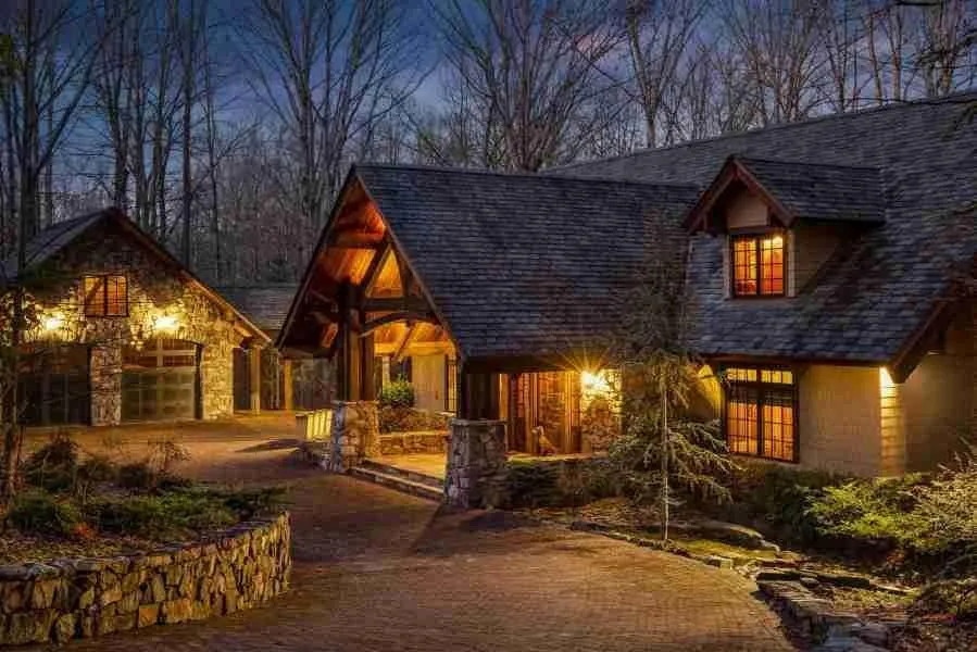 Thoughtfully created, masterfully constructed, meticulously maintained custom luxury home hosts refined rustic livability with premier fit & finishes against a woodland backdrop. Inspired by iconic Adirondack Mountain lodges, enjoyment of the escape begins with daybreak coffee beside soaring fireplaces or along 800+ feet of Wolftever Creek. Local architect Heidi Hefferlin showcased top materials & impeccable artisans' craftsmanship. No expense spared, no detail overlooked, as evidenced by the trusses, mortise & tenon joints, premium grade slate roof, hand-laid stone, & 300 yr. pine from historic Plymouth Cordage Co., once the world's largest rope manufacturer. Situated on 6+ acres, the surprisingly convenient dwelling is just 3 min. to Publix & I-75, 26 min. to downtown Chattanooga.