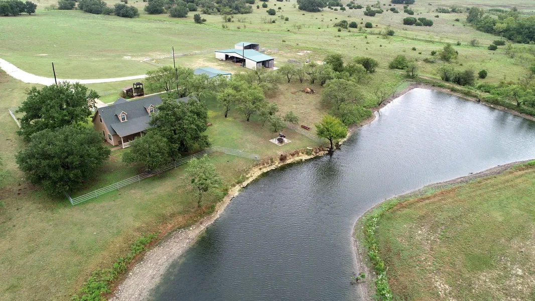 225.99 acres 3 Br 2.5 Ba Home with open floor plan, 2 living area, the master bedroom is downstairs with walk-in closet, jetted tub & shower & upstairs is 1 bathroom & 2 bedrooms. The home has ceramic tile floors , carpet in the bedroom & wood flooring in the second living area-den, The home has a front & back porch and a deck in the backyard, The ranch has 2 ponds with the largest pond being approx. 1 acre in size being right behind the house. The pond is stock with fish (catfish, bass & perch). There is a 2-car garage-storage build that is 35 ft. x 30 ft. a barn-shop-equipment shed that is 68 ft. x 30 ft, a 2 stall horse shed that is 20 ft. x 30 ft. & a hay shed-equipment shed that is 60 ft. x 100 ft. The ranch has approx. 60 acres of improved grasses, good fences & rolling terrain with scattered tree cover with good views overlooking the ranch. The ranch is centrally located being approx. 1 hour from Brownwood, Copperas Cove-Killeen, and 1.5 hours from Austin, Waco & Temple.
