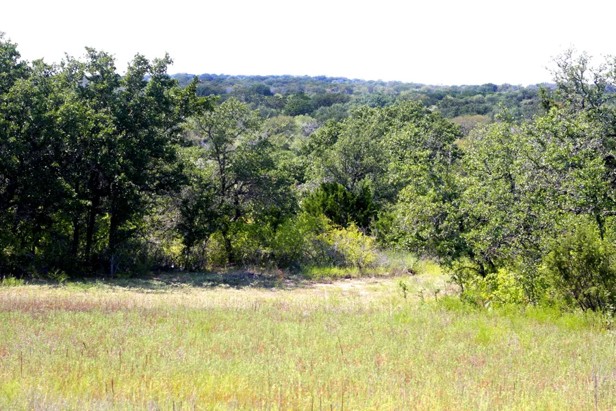 Rocky Waters Ranch is a 1375 acre property with 700+ acres high fenced for deer management. In addition to two modest houses and assorted barns, this portion of the ranch includes extensive scientific deer breeding pens, traps and a vet building. The terrain is heavily rolling and offers great views. Despite the proximity to Hico, the ranch feels very remote. Heavily wooded with mature oaks, cedars and mesquite, the ranch drives big due to thoughtful brush sculpting throughout. The ranch has large food plots, professional feeders, deer blinds and fresh water troughs scattered throughout. Additionally, Honey Creek, a major rock bottom creek in Hamilton County, passes through the ranch.