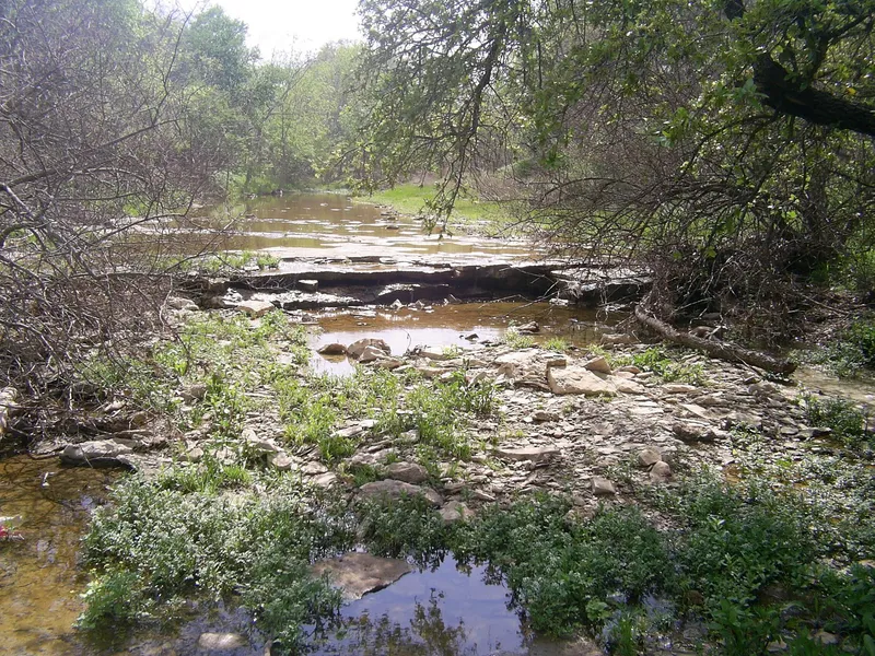 Both sides of Pecan Creek, Rocky Bluffs, Live Oaks, Pecan Trees.