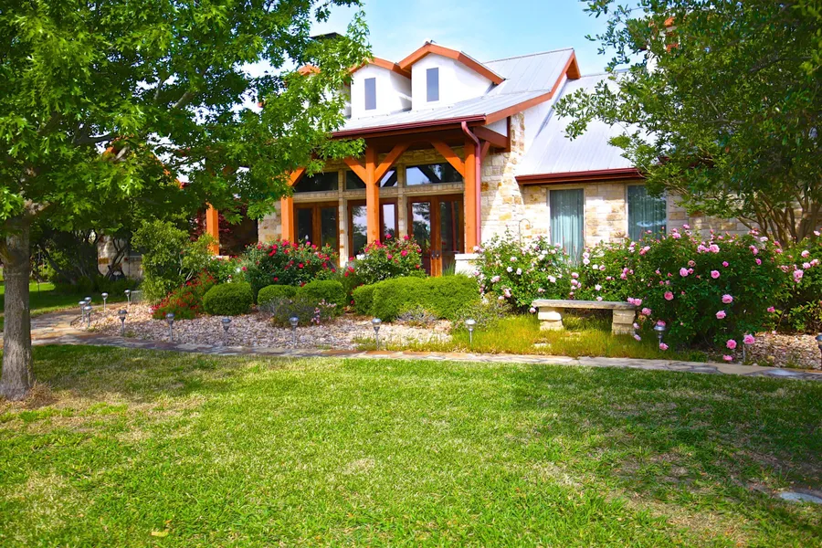 The Double J Ranch consists of 190 acres of rolling terrain with beautiful views of neighboring hills. Drive into the ranch off of a quiet county road, and enter the property through a custom gated entrance, with 830 sq. ft of concrete driveway lined with crepe myrtle trees, to the impressive 4469 sq. ft. custom Texas style rock home.