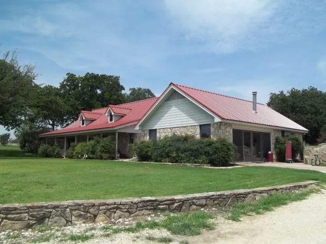 Three bedroom Two Bath Rock home with large in-ground pool, office space, and additional family room. Additional living area with bathroom above two car garage was remodeled in 2001 and has tile and berber carpet floors. The floors in the kitchen, bathroom, and utility room are imported honed slate stone. Bedrooms, master bath, and game room have tile floors. Kitchen was remodeled in 2002 and has custom omega cabinets, stainless steel appliances, and granite counter tops. Wood pella windows are throughout the home. The metal roof is 6 years old. There is a large 2 bay implement shed, a large horse barn, and a large arena. The horse barn has 4 regular stalls, a foaling stall, and a hay bunk with lots of storage. Additional 214 acres also available. The place has ag exemption and minerals are available. Watch the video on the Video Tour tab to see barns and interior of home.