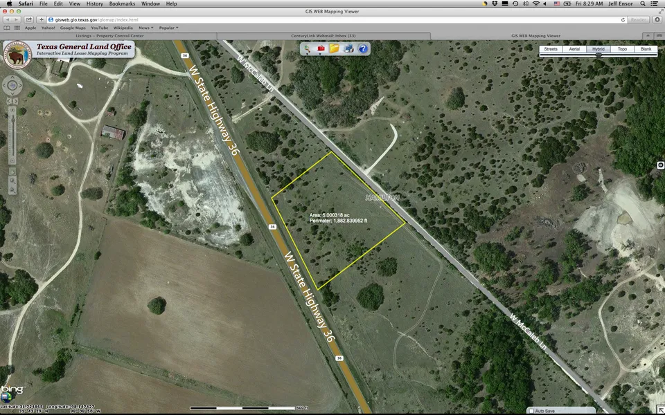 5 acres, more or less, within 2 miles west of Hamilton, TX. Scattered timber, Hwy 36 frontage, electricity down property line, must drill a well for water.