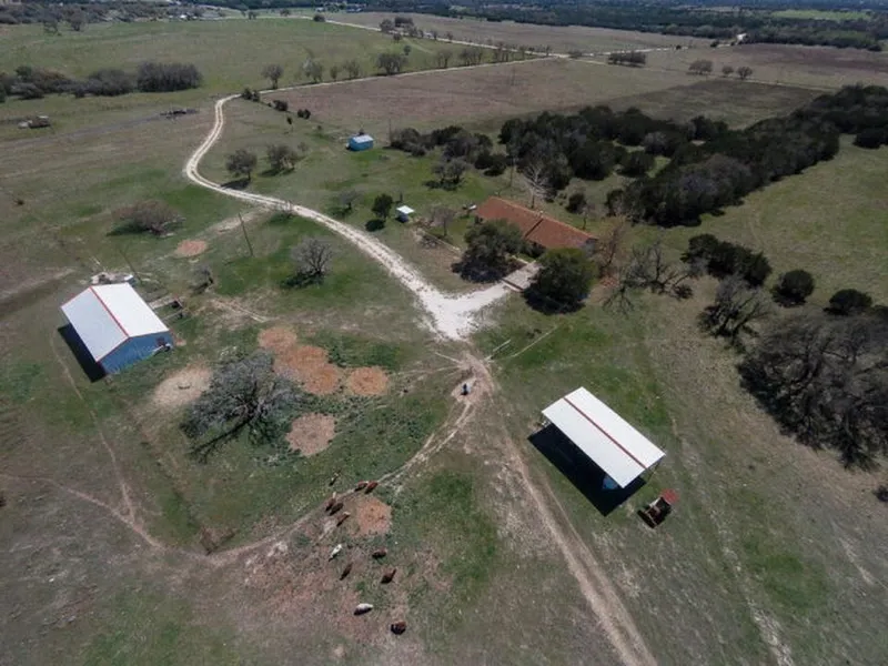 This is a must see all around Hunting/horse/cattle property. Excellent deer and dove hunting location. Move in ready 3/2 home on beautiful diverse acreage. Large arena with return alley, and roping boxes. Working pens for cattle. Nice four stall barn with water and electric to barn. Tack room included. Additional storage barn, and pole barn for tractor or hay storage. Large amount of grass/grazing pasture with areas of large oaks and cedar cover. Two large stock tanks. Perimeter fences all within 6 years old.