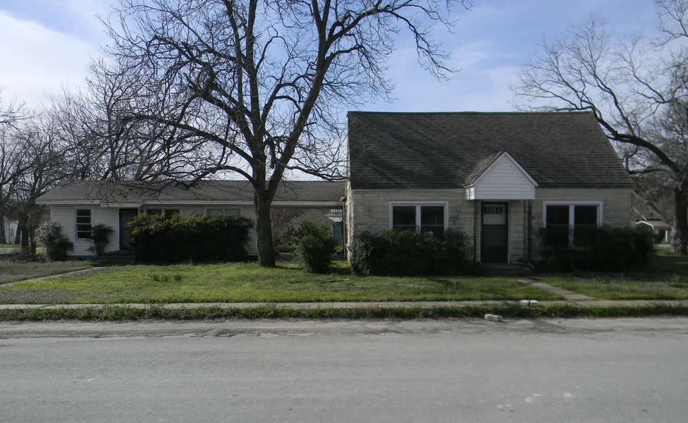 Very nice 2 story older home build in 1946 on large lot with 2 extra buildings for storage or offices. 2 bedrooms a living room and 1 bath and kitchenette upstairs. 3 bedrooms 1 bath downstairs. The livinging room is open and spacious and has all the original hardwood flooring.