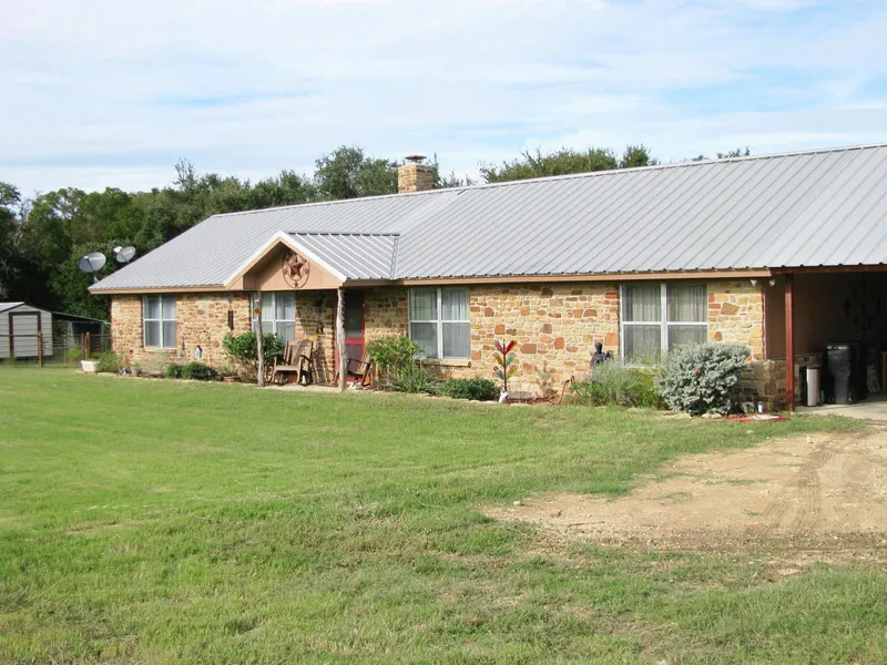 11.937 acres with 3 Br 2 Ba home southwest of Hamilton, TX on FM 2005. The home has an open floor plan, granite counter tops and oak cabinets in the kitchen, a fireplace with insert, large master bedroom with walk-in closet, jetted tub & separate shower in master bathroom, large back porch that runs the length of the house and a nice covered 2 car carport that is attached to the back porch & the house. The exterior of the house is native rock on the front & Hardie-Board on the sides & back & a metal roof. The property also has a 40' x 35' insulated shop with a 8' porch & a bedroom with bathroom in one end of the metal building. The property has several outbuildings, good fences, electric front gate, pipe yard fence, seasonal creek that feeds into a tank that is stocked with catfish, 1 well that is approx. 410 ft. deep & produces 37 GPM. The land is rolling with scattered tree cover.