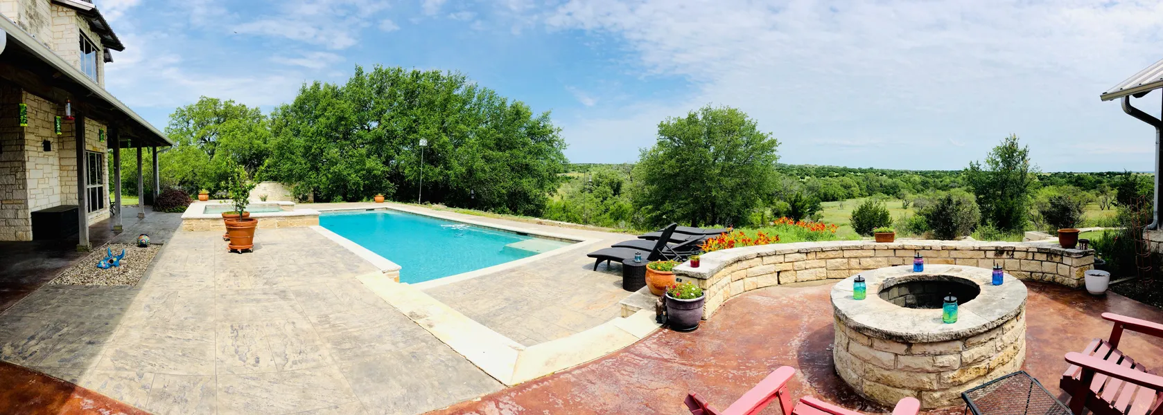 Once out back, you can enjoy a nice fire in the wood burning fireplace, or head on out for a dip. The pool is rectangle in shape and has a small play/tanning area. The hot tub is grandiose and will hold plenty of your closest friends. There is a sloped waterfall from the spa to the pool, which creates a relaxing environment at all times. The current owners also put in a custom fire ring between the pool area and the additional grilling porch. The view from this entire area is breathtaking. You can see down to the bottom land, which has a magnificent creek flowing, large live oaks swaying in the breeze, or the picturesque wildflowers. It is definitely a sight to see. The land consists of some open pasture with good grasses, as well as some heavily wooded areas, great for wildlife. One creek flows through most of the property, and then dumps in to Farnash Creek, which enters the place on the North West end and flows out the North boundary.
