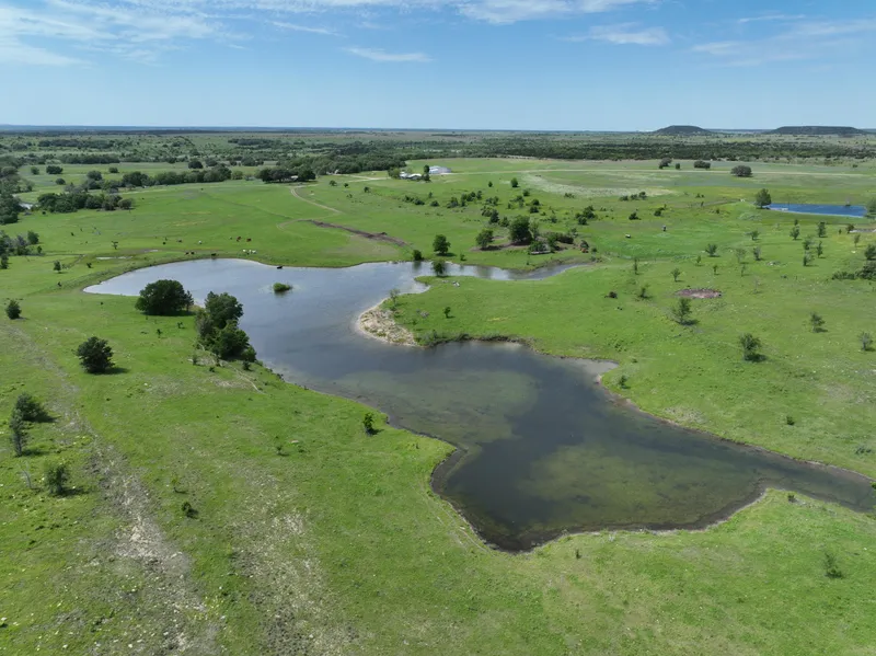 Situated between Hamilton and Cranfills Gap TX you will find this incredible 403 acre ranch with a 3 bed 2 bath 2433 sf home. It has an open kitchen with granite counter tops, double sink, lots cabinets, induction stove, dish washer and refrigerator. Living room with a rock fireplace, large utility room and billiard room. The 42x13 sun room features a wood stove and floor to ceiling windows that provide stunning dusk and dawn views. The home has a metal roof that was installed in 2022 and double paned windows that were installed in 2013.