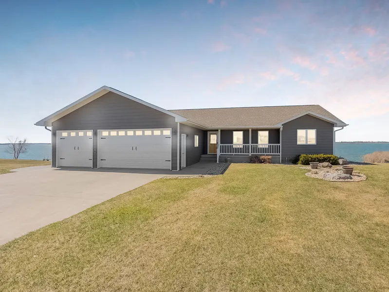 Live at the lake year-round and enjoy all that the Lake Albert and Lake Poinsett area offers! This 6-bed, 4-bath home is perfectly situated on a gently sloping lake lot with 75 feet of shoreline on the northeast side of Lake Albert. Across the street, step onto the 14th hole of Lake Region Golf Club, a championship 18-hole golf course renowned for challenging play and beautiful views of wetlands, prairie, lakes, and wildlife. The spacious floor plan is inviting and captures the essence of cottage-style lakeside living. Throughout the home, custom white wainscot adds refinement to the cozy and comfortable lake home. The yellow front door with a leaded glass window welcomes you into the roomy entryway. Inside, youll find a front closet and space to welcome guests.The huge central great room has durable ceramic tile and vinyl plank floors and includes an electric fireplace with a custom mantle and surround. From the great room, you can head straight out onto the expansive deck through the glass doors or linger in the kitchen and dining room to prepare a fun family meal. While in the kitchen, you have a full view of the lakeshore through the large kitchen and dining room windows. The kitchen includes updated stainless steel appliances and stunning quartz countertops. After a full day of boating, swimming, fishing, or golfing, youll be ready to unwind in the large jetted tub in the primary suite on the main floor. Other amenities in the primary include a walk-in closet and sun deck. There are two additional bedrooms and another full bath on the main level. The lower level is a walk-out towards the lake, with almost the same floor plan as the main level, including its full kitchen. Lake views are everywhere, thanks to the large windows and patio doors. There are three large bedrooms, two full bathrooms, many storage areas, and large closets. The home includes an attached 3-car garage, and on the lakeside, there is a new attractive patio to enjoy grilling and bonfires. To top it all off, this home is heated and cooled with a highly efficient geothermal system. There are so many amenities in this lake home! Give us a call to learn more and to schedule your private showing.