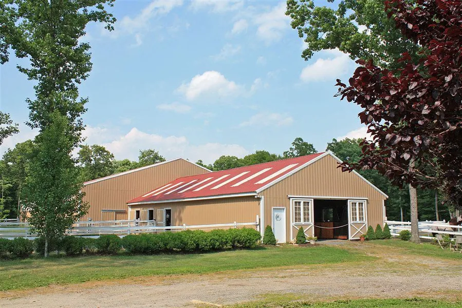 Welcome to Whippet Run Farm. Privately sited on a 15-acre estate lot abutting Norcross Wildlife Sanctuary. This custom, state-of-the-art facility has been extremely well designed, including being mindful of low maintenance and ease of operating with an impressive list of amenities for the equestrian enthusiast. The seven stall (12x12) center aisle barn has an attached 70x140 indoor arena with sprinkler system, mirrors & sand/rubber footing. Each stall is matted, includes a heated Nelson automatic waterer & direct turnout into individual paddocks with Centaur fencing. Barn includes: heated tack room with 7 tack closets, utility sink & bath; wash stall (h/c) & radiant heater; 12x24 room for hay storage; center aisle w/brick paver flooring, oscillating fans, stereo system & radio and fire alarm connected to house ADT system. Outdoor Sand Dressage Arena (70x200). Grass Carriage Driving F...