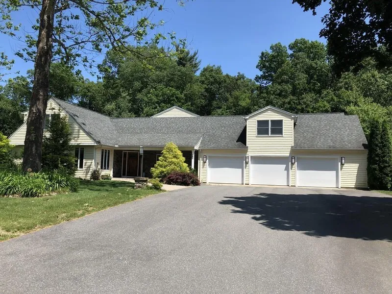 Situated on over and acre of privacy ,this Contemporary Cape awaits you ! Originally built in 1958, this home has had the pleasure of being extensively reconstructed and expanded in 2007 w/ the addition of a great room (24 x 24), sunroom (15'7 x 9'7) w/ skylites and access to paver patio and yard, an additional bedroom as well as a third garage bay ( now 21'3 x 37'6 ) . The great room has a stunning gas fireplace surrounded by a soaring wall of glass letting in the beautiful natural light. Contiguous to the great room is the formal dining room (18'9 x 18'9) as well as a half bath and a media control room. The pecan wood kitchen is completely equipped for the chef of the house. Master bedroom offers 2 walk-in closets and a dramatic Master bath .Upstairs you'll find 3 more bedrooms and another full bath as well as a loft area overlooking the great room. The 4th bedroom has served as an artist studio and office. The list of special features goes on and on !