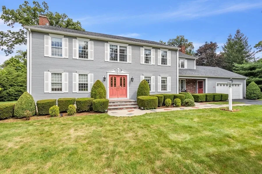 Welcome to this Spacious 10 room, 5 bedroom, 4 bath Colonial nestled on a culdesac neighborhood. Situated on a private lot w/ over an acre of land living space exceeding 4,680 square feet this home has it all! The LR spanning front to back is flooded w/ natural light, fireplace & hwd floors. Large open kitchen w/loads of cabinetry, counter space with an island. Separate DR is perfect for gatherings. Family room has built-ins, a stunning brick wood burning fireplace & hwd floors.This space flows into the bright & airy sunroom w/ tiled floors, & an additional full kitchen. Enjoy outdoor living on the 17x 21 TREX deck w/ private views. The second level has 4 large bedrooms, 2 full baths w/ tiled showers. The primary bedroom oasis features a wood burning fireplace, vaulted ceilings w/ large beams, hwd floors. The beams continue into the primary bathroom surrounded by windows, tiled shower, j...