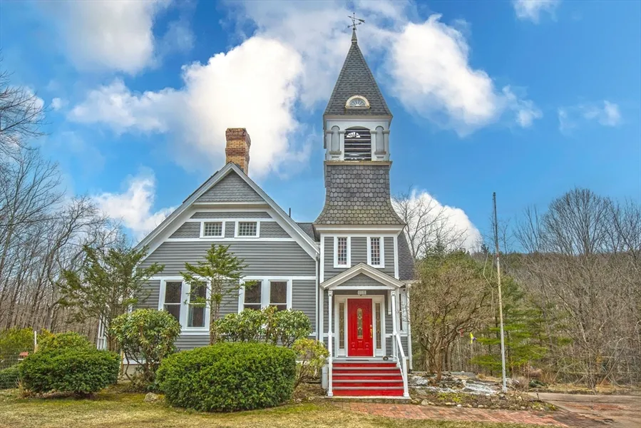 This house retains the high wood ceilings, archways, stained glass and pocket doors and steeple of its former life as a church. It now offers a heated built-in pool, indoor hot tub, screened-in porch, sunroom and open floor plan, all amidst a beautiful country setting. The home has a magnificent double sided two-story stone fireplace extending from the living room through the master bedroom, as well as a fireplace and wood stove in the basement. The large master bedroom has both his and hers built in dressers, as does the study (or additional bedroom) down the hall. Approx 1600 SF of additional living space in the lower level, complete with a kitchen, bath, bedroom, and spacious living room. Relax in your atrium with its hot tub and wet bar, or enjoy a peaceful screened-in porch on the main floor. A short drive to Jacob's Pillow, and many other cultural and recreational offerings in the Berkshires and east to the Pioneer Valley. New windows, new central air, new appliances. Recently pa