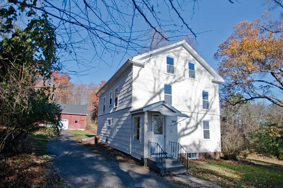 Buyers Financing Fell Through! You won't want to miss this beautiful 4 bed, 2 bath colonial. This home sits on over an acre of land, elevated and set back off of route 47 boasting wonderful views! Inside you will find a beautifully, remodeled kitchen featuring new cabinets and granite counter tops along with an abundance of natural light. Around the corner is the formal dining and living room which both have newly refinished oak hardwoods, as well as a full bathroom. The second floor hosts 4 generous sized bedrooms and has an additional full bath. Both bathrooms have been fully remodeled with all new fixtures, and vinyl flooring. All of the bedrooms have newly refinished oak hardwoods. Peerless boiler and new Roth double lined tank was recently installed (Oct. 2021). Outside you will find a barn style, oversized, detached garage, with a new roof, that can fit multiple cars. Property abuts conservation land with multiple hiking trails.