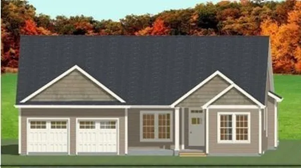 New construction TO BE BUILT. This ranch plan has three bedrooms, two baths and a two car garage. Off of the main entry are two bedrooms, main bath and closet/pantry that leads into large open area that includes dining room, family room and kitchen. The large kitchen has a center island with over sized bar area for entertaining. Off of the kitchen, the dining area radiates natural light from the double window overlooking the backyard. Attached family room has a gas fireplace and sliding glass door that leads to the backyard. Entering from the garage leads directly into mud room with large coat closet and separate laundry room. Just off of open living area the spacious main suite has walk in closet and full bath. Home can be customized to fit your needs. Lot 1 is two acres of private wooded lan