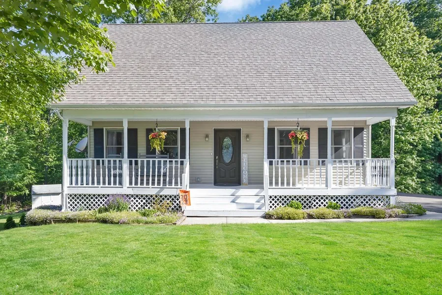 Embrace the rare opportunity to join the Dana Woods community! This beautiful 4 bed 2.5 bath home is nestled inside one of Belchertown's most sought-after neighborhoods. The open concept 1st floor is flooded with natural light! The light and bright kitchen features white cabinets, stainless steel appliances, an island and pantry closet. Off the kitchen is a half bath and one of 4 bedrooms. Step out the side door to have your morning coffee on the back deck while watching the lovely assortment of birds that live nearby. On the 2nd floor you will find the large primary suite with walk in closet, and full bath. Just down the hall is the other full bath and 2 additional spacious bedrooms. The partially finished basement walks out into your wide-open back yard! This yard is the perfect combination of lush green grass and majestic trees. Relax outdoors on your private back deck, or full front porch. You do not want to miss the chance to call this charming house your new home!