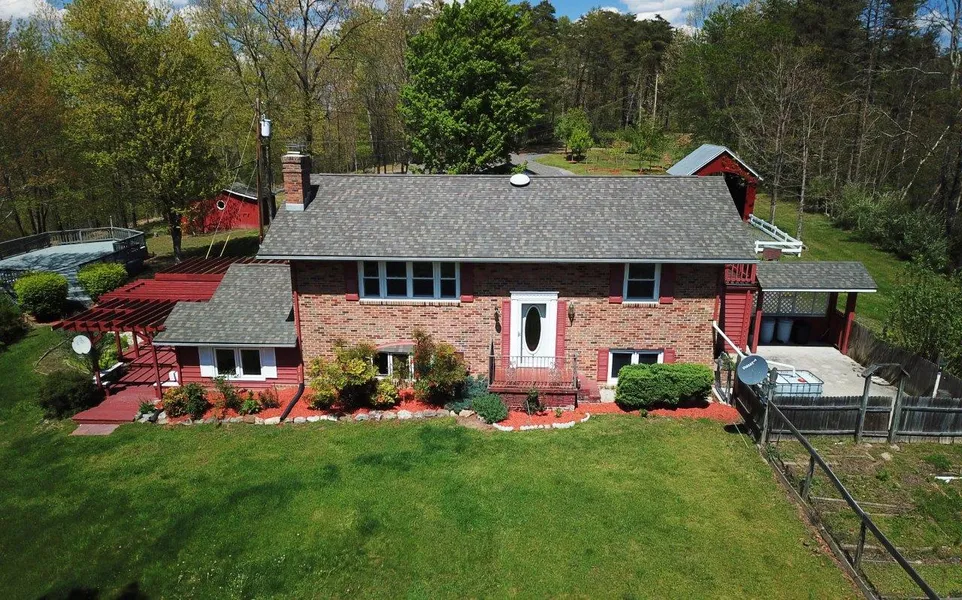 TWO HOUSES ON 12 PRIVATE ACRES! BEAUTIFUL MOUNTAIN VIEWS! Don't miss this rare find. No HOA. Would make a great family compound, a bed and breakfast or a country getaway. Spacious brick home with 3 bedrooms and a den. Plus a separate 1-bedroom guesthouse for visitors , in-laws or tenants. Main house is freshly painted and has new and refinished flooring. It offers large living and family rooms, decks and a covered patio. Beautiful level lawn. Small orchard and fenced garden with rainwater reservoirs. Also a 44x20 stand-alone deck for summer evenings, a 24x21 one-bay garage, 22x15 carport and 26x10 shed. A nice property but sold as-is.
