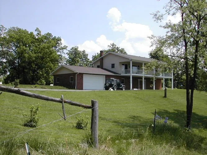 Escape from the city, remote country location, 3 BR, 3 bath, brick & vinyl sided, whirlpool tub, 2nd story covered 40x10 porch, kitchen w/ custom oak cabinetry, center island w/ breakfast bar, raised deck for entertaining, living/great room w/ adjoining rec area, custom corner brick fireplace w/ gas fireplace, large bay window, double French doors to covered concrete patio, 2.5 car attached garage.