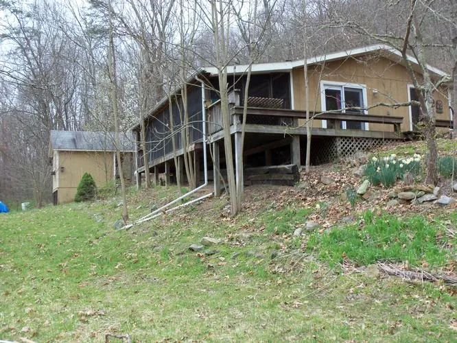 Relax and enjoy this sweet cottage on a trout stream and bordering the bass lake, 2 bedrooms, living room, kitchen dining combo, bath, large screened porch on 5 acres.
