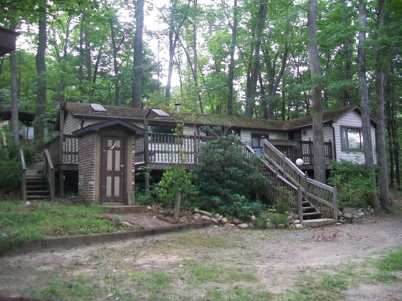 LOOKING FOR THAT LITTLE GETAWAY NESTLED ON A KNOLL IN THE WOODS. YOU JUST FOUND IT. SITUATED ON EIGHT SMALL LOTS TOTALING .6885 ACRE. DRIVE WAY GOES FROM ONE ROAD TO THE OTHER FOR EASY ACCES. EXTRA SHEDS AND GARAGE. EVEN A 2ND BATHROOM OUTDOORS. COMES AS IS AS YOU SEE IT, FURNITURE INCLUDED.
