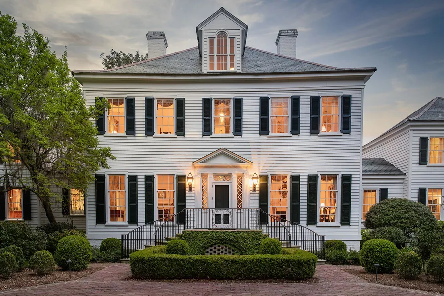 Privacy abounds at Bonny Hall, a stately, Georgian-style c.1897 architectural gem located in Beaufort County, SC. As you enter the private, gated 86 acre property, an umbrella of majestic, century-old live oaks guides you to an exposed brick courtyard surrounded by mature, lush landscaping. A dual-stone staircase leads you to a pedimented front door and impressive interiors. Graced with extensive original millwork, soaring ceilings and antique mantels, both formal and less-formal rooms offer places to socialize, work, read, enjoy a glass of vintage wine and gather with friends and family. Five beautifully appointed bedrooms with four-poster beds, antique furniture and en suite bathrooms provide elegant and ample accommodations. Complementing the historic main home, two fully renovated, charming guest cottages can house additional friends and family, each with its own living room, working...