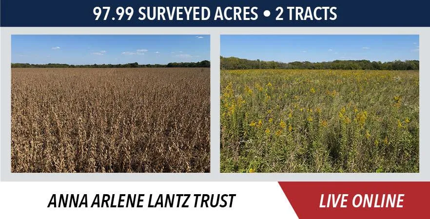 The Lantz farm will be sold on a price per acre basis, based on surveyed acres. Both tracts will be offered through the marketing method of Buyers Choice, whereas the high bidder can elect either tract for their high bid. If the high bidder does not elect both tracts, the remaining tract will then be sold. The tracts will NOT be offered in their entirety at the conclusion of the auction.