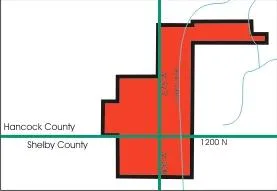 On the Shelby and Hancock County Line Road and 675 West. One and one-half miles south of New Palestine, Indiana and SR 52.