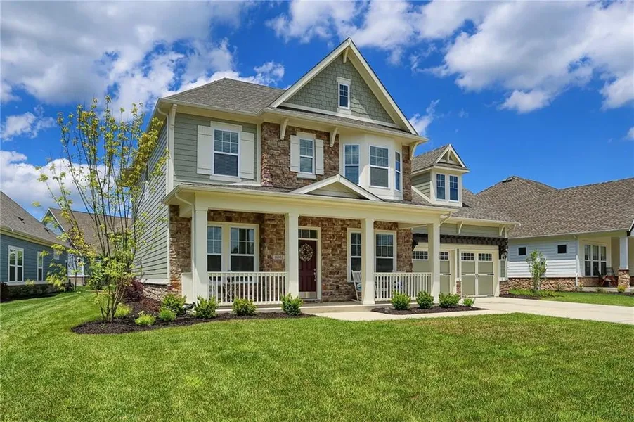 Why wait to build when you can buy this fantastic, just like new home. The stunning open concept design offers 10' ceilings on the main and 9' on the upper level. Main floor office w/french doors makes it convenient & comfortable to work from home. Enjoy the beautiful open kitchen w/tiled backsplash & quartz countertops. Multiple spaces are available to entertain family & friends from the formal dining room, to oversized kitchen island, or great room with cozy stone fireplace. Upstairs has 3 large bedrooms + open flex space for lounging, homework or crafting. Spacious master retreat offers a large quartz dbl vanity, soaker tub, w/i shower & massive closet. Upstairs laundry. Spend time outdoors relaxing under the covered back porch.