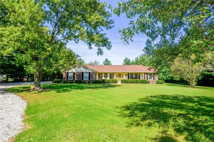 Here's an exceptional brick ranch sitting on 1.68 acres offering lots of privacy created by the mature evergreens that line the property! The home offers over 1,700 sq ft of living space that has been nicely updated and cared for. Spacious kitchen offers hickory Kline Cabinets plus new appliances and is open to the family room offering a wood burning fireplace. There's also a den for that extra space you need! You'll also find a newer roof, thermal windows, newer interior paint, an invisible fence and other improvements. The 35x40 pole barn has concrete flooring, electric, water and newer LED lighting. Plenty of parking as well. Spacious patio & large inviting front porch. Definitely worth a look!