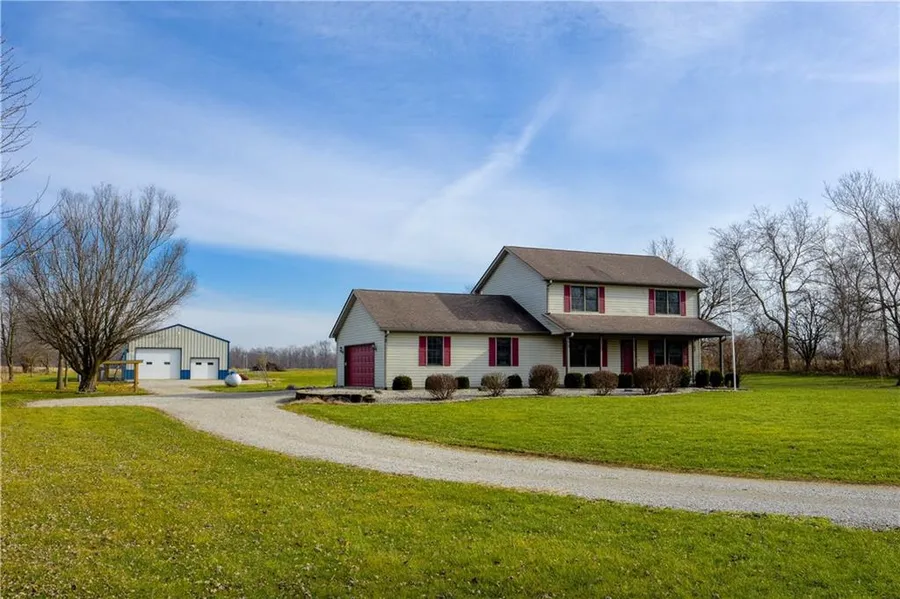 Here's a great package offering a super nice & clean home built in 1999, 2.5 acres and a 56x32 pole barn! This home sits far off the road and offers great appeal! Inside you'll find a den & living room, spacious eat in kitchen area and a nice master suite! Large covered front porch, screened in patio with hot tub and good sized open patio. The attached garage is over-sized offering 728 square ft. The pole barn was built in 2006 and offers concrete, insulation, 10 ft overhead door and a 200 amp electric panel! The property is nicely landscaped and is a must see if you're looking in the Eastern Hancock School District.