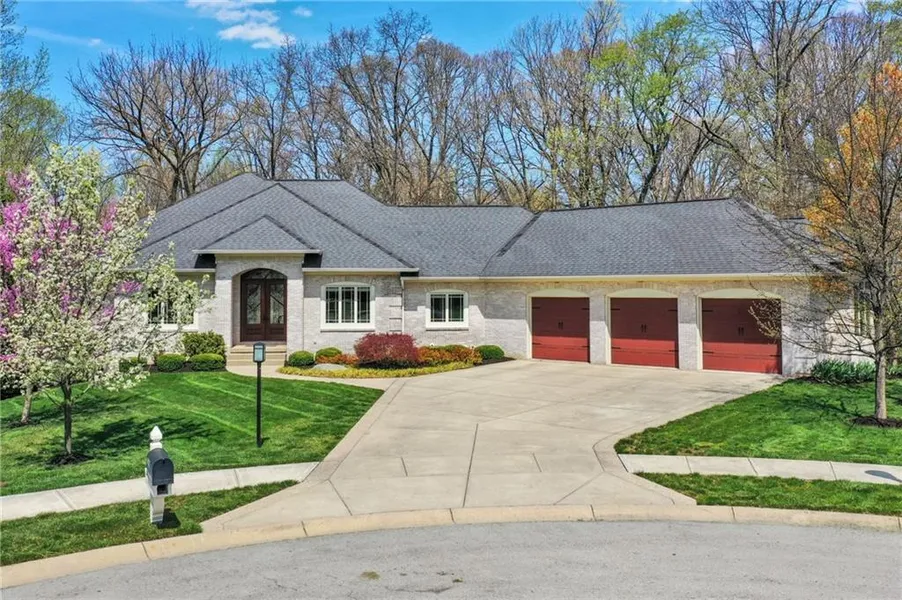 All brick custom ranch with walk-out basement on wooded lot steps from Geist Reservoir! Unparalleled craftsmanship with nods to contemporary & stately design are found in the hand crafted wood work, recessed wall niches, surround sound & floor to ceiling windows. Grand foyer mahogany doors & Ragno stone tile lead to dining & office. Great room with soaring coffered ceiling & sunroom with built-in hot tub. Chef's kitchen has custom soft close cabinets, imported granite counters, tile backsplash, pot filler, & center island veggie prep sink. Secluded hallway with tempered glass staircase leads to luxury master suite with spa bath, closet with center island & private deck entry. Lower level has theatre room with Sonos system, wet bar, & more!
