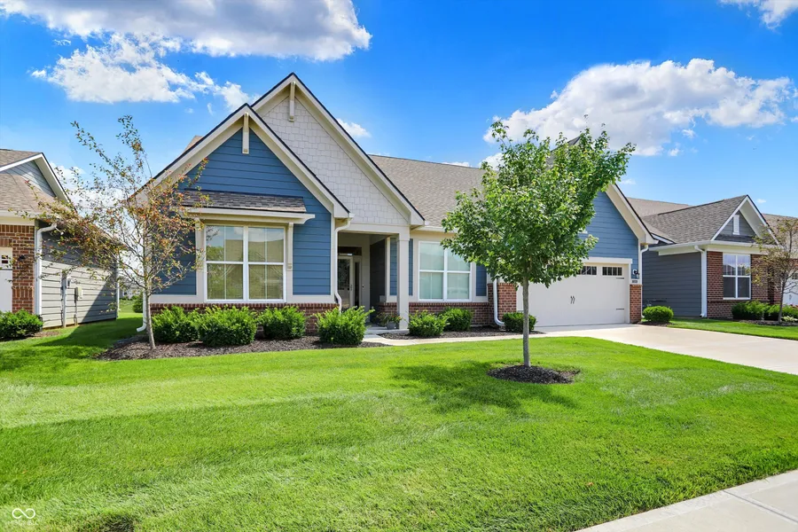 A RARE FIND!! GORGEOUS & IMMACULATE "SHOWSTOPPER" rivals a model PLUS MAINTENANCE-FREE LIVING on PREM WATER-VIEW HOMESITE w/OUTDOOR LIVING!! OVER $22K ADDED IN HIGH-END FABULOUS FEATURES ~ MODERN ELEGANCE & LUXURIOUS DESIGN ELEMENTS ABOUND w/SPACIOUS & STUNNING OPEN PLAN w/ high ceilings, ideal for entertaining both indoors & out + wall of custom built-ins w/office space desk! Huge 3rd bay garage space for hobbies! ENJOY BEAUTIFUL WATER VIEWS & PEACEFUL NATURE PRESERVE from LARGE COVERED PORCH/PATIO & nearly every window & you'll love dining al fresco w/ peaceful ambience. GORGEOUS HOME CHECKS ALL BOXES! Beautiful plank wood lam flooring & fresh neutral color palette w/crisp white trim grace this PRISTINE 3 BR 2 BTH home ~ Entertaining is effortless indoors & out w/ BEAUTIFUL large GOURM KITCHEN w/stunning quartz counters, 42" cabinetry, tile backsplash, stainless-steel appliances, gas range, LRG walk-in pantry, large cntr island w/bar seating space opens to SPACIOUS DINING w/STUNNING chandelier & pendant lighting & GR featuring beautiful floating shelving & cozy gas FP & large rear covered patio! GORGEOUS custom window treatments throughout! BEAUT owner's retreat w tray ceiling & ensuite bath features double raised vanities w/quartz counters, LUXURIOUS OVERSIZED SHOWER w/built-in seating & convenient ledge, private water closet, & LRG walk-in closet. Spacious 2nd & 3rd BRs w/ walk-in closets. Thoughtfully designed +Smart home features incl Ring doorbell, wireless thermostat & app-controlled garage door opener add modern convenience. GARAGE is drywalled w/LARGE 3RD BAY features added lighting + electric & water connection - perfect for hobbies, wkshp, rec space, or extra storage. ENJOY SUMMERS AT THE POOL,TRAILS, PARK & PLAYGROUND + DEDICATED CLUBHOUSE W/SOCIAL & CLUB ACTIVITIES YEAR-ROUND! MIN to shops, dining, parks, Daniel's Vineyard & Geist Lake w/boat rentals! RELAXED LIVING ~LAWNCARE & SNOW REMOVAL TO THE FRONT DOOR! Exquisite home & truly a lifestyle upgrade!