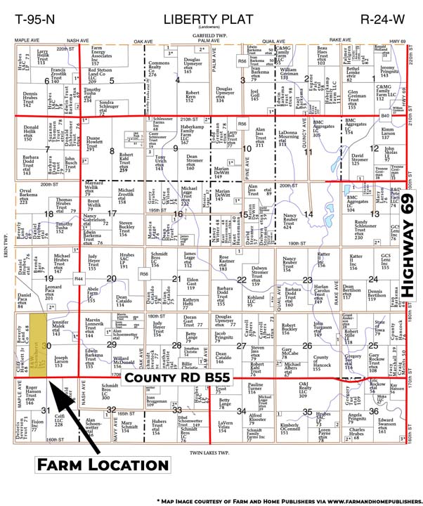 Research Parcel InformationFarm is located 8 miles northeast of Kanawha and 8 miles southeast of Britt, IA. Call brokers for directions signs are on the farm.