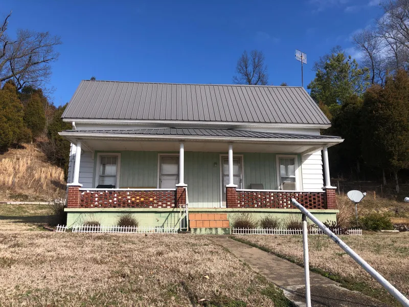 of road frontage. Features of home include vinyl siding, metal roof, hardwood floors, 4 bedrooms, eat in kitchen, living room, full bath,