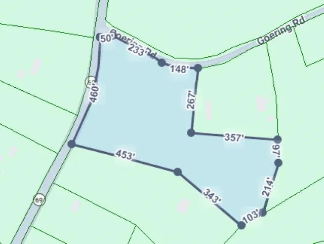 Owner financing terms: 20% down, interest 1% lower than the going rate. Over an agreed-upon time period. Lot has a good building spot, located at the corner of Hwy 69 and Goering Rd