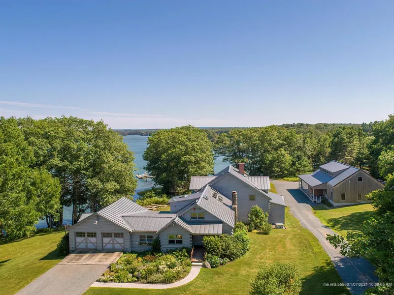 Situated 5.5 miles up the Bagaduce River from Penobscot Bay and Castine, this one-of-a-kind home sits on 12-acres of woodlands and fields with 600' of waterfront on the dynamic Johnson Point Narrows. Harbor seals swim through the ever-changing tidal current to sun themselves on nearby granite ledges. The well-maintained dock features a 10' x 36' float, making for easy boating access to explore the diverse wildlife of this unspoiled estuary. This high quality habitat is heavily used by migrating waterfowl, wading birds, and other wildlife. Bald eagles nest within view at a nearby island.In 1980 the original log home was lovingly restored, and in 1998 a contemporary addition was created to provide spacious, open living/kitchen/dining with a fabulous master suite with a sitting area above. Then, in 2010, a cavernous 2,500 sq. ft. art studio was constructed that would be perfect for any numb...