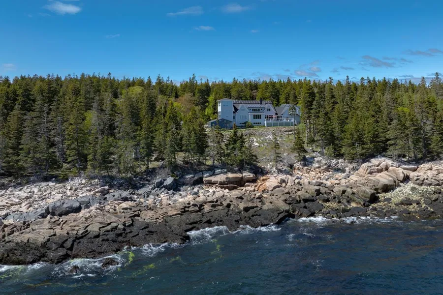 One of a kind Rockport Post and Beam looking out to open ocean and across to Frenchboro. Plenty of custom interior details with a map of Swan's Island custom fit into the floor tiles on the main floor and a large custom masonry heater/fireplace chimney that emulates a tree trunk rising up through the middle of the house with simulated branches cut into the tile on the second floor. The lower level of the tower has an Indoor endless performance hydrodrive wave pool enclosed in glass where you can look out at the open ocean while you exercise. Make your way up the stairs to an office in the middle and then an observatory tower room with daybed and chairs to enjoy mesmerizing panoramic views. First floor primary suite and newly remodeled kitchen and living area that walks out on to a screen room and large open deck on the water side. The upper level is a cathedral loft style that has a bedr...