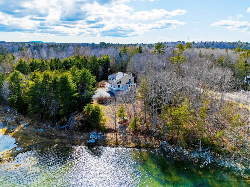 368 feet of OCEANFRONT at the head of West Bay. Privacy! Spacious home on over six wooded acres built in 2008 by master builder Dave Philio. Home is on three levels with two totally separate garages each opening into the home on ground level with two living levels above. Open concept design on the first level: the kitchen flows to the dining room, opens to the living room with stately brick wood-burning fireplace, and out on to the enclosed porch/sun room and the wide decks. Perfect for enjoying the sea, the VIEWS, and the outdoors while cooking, dining, entertaining at any time of the year! Very large first-floor primary bedroom has beautifully crafted built-in furnishings, en suite designer bath with jaccuzzi tub and private flush. Pure luxury. All oak floors throughout the home with tile and granite in baths and kitchen. Excellent, quality construction. The cathedral ceiling in the living room opens to a balcony on the upper level for spacious elegance. Two large bedrooms, a bath, and open office space complete this level with the view of the living room below from the balcony and of the sea beyond, capturing the feel of airy openness and light that is Maine. Multi-zoned heat, heat pumps for air conditioning, and whole-house fan for comfort in all seasons. Exterior is vinyl shingling for low maintenance. Beautifully landscaped with perennials, seaside rugosa and a small ornamental frog pond, the yard slopes gently to the sea. Across the water is a bird sanctuary. Beyond the lane is plenty of land for wandering among the trees, picking apples from the old orchard, gathering wood for the fireplace--or building a cabin for guests. Acadia National Park's Schoodic Point, the village of Winter Harbor with its golf course, restaurants, galleries & shops, and numerous Arts venues are at your doorstep. Home is being sold fully FURNISHED, turnkey. Move in, relax, and just enjoy being in this exquisite home in Maine!