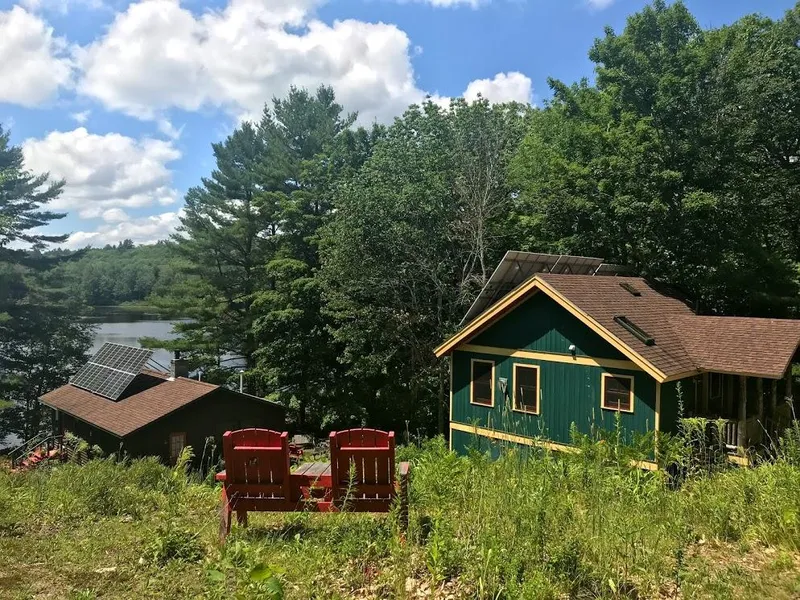 Williams Pond Lodge: In the woods, On the pond, and Off the grid. This wonderful private family compound is set on a wooded 21.9-acre park-like setting, with over a half mile of water frontage (3,000+) on peaceful Williams Pond. The lodge is located near the vibrant small town of Bucksport. The property consists of two cottages, each with spectacular water views just a stones throw from a sandy beach at the edge of the pond. The Main house (built in 1971) was renovated by the current owners in 2003. It includes two guest rooms w/private baths, gas fireplace in great room w/kitchen, dining area and separate cozy library room (w/ upright piano- conveys!) w/private bathroom. The beautifully designed energy efficient carriage house was added in 2007. It contains two private guest suites w/gas fireplaces, an entry porch, screened porch, and garage. The 21.9 acres includes a sandy beach, lakefront picnic areas, and plenty of room to build additional homes. Electricity is supplied by arrays of solar panels, storage batteries, and a propane generator back-up. Spring-fed Williams Pond offers swimming, boating, fishing, and access to hundreds of acres of wilderness to explore. This is a great place to start and end after day trips to Acadia National Park and the best Maine has to offer from Downeast to mid-coast and beyond. Williams Pond Lodge-extraordinary no matter what season! Make it your special retreat...