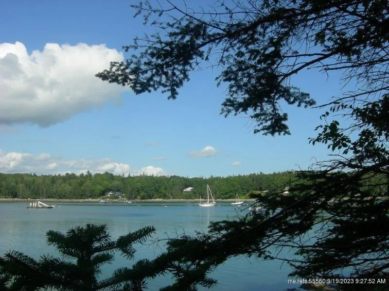 Elevated water front lot in the heart of the village across from the tennis courts and short walk to library, chapel, and harbor. Views of Back Cove and and option to connect to town water.