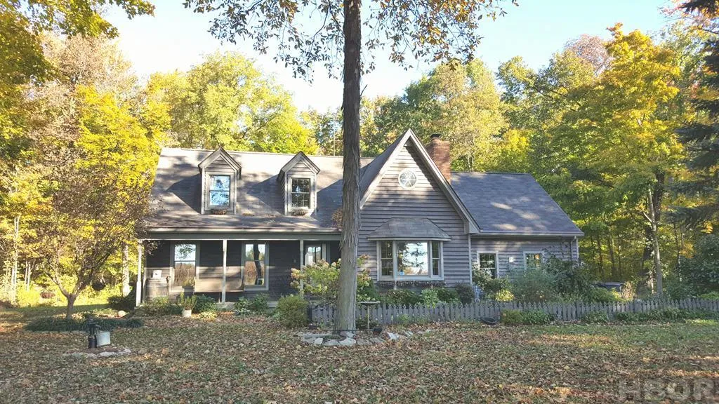 Great country property - woods and flowers surround this 1.5 story home, 4 bedroom, 2 bath, master on 1st floor, rustic living room with stone fireplace, soaring ceilings and wood beams, loft room, small bedroom on 1st floor would make a great nursery or office. Cable for fast internet. Nice porch and patio to view nature. Chicken coop with chickens, extra building 22x24 with walk up 2nd story. A must see property! Wall cupboards in bath and living room will be removed. 5x5 pantry was laundry at one time. Full basement for all your projects, hobbies, etc.
