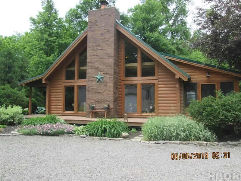 Welcome to your own private resort centered on 6 private, wooded acres. This secluded oasis is an outdoorsman/women's dream home! Start your day watching the sunrise from the stone patio surrounded by beautiful landscaping brimming with perennials for easy upkeep. The covered front porch is the perfect place to end your day, watching the sunset. There are dirt walking trails throughout the woods for easy afternoon strolls. Take some time to relax by the pond with a fountain and is 16' deep and stocked with bass, bluegill and frogs for your fishing adventures. Rounding out the property is a 30' x 40' outbuilding with electricity and concrete floor. Moving to the inside, the wood beams & high ceilings will take your breath away! A brick floor to ceiling fireplace is impressive! Open floor plan includes the living room, dining room and kitchen, perfect for entertaining. Large windows showcase your property from inside & out. Two main floor bedrooms ( one being currently used as a den) and 1 bedroom in the loft area with full bath and sitting area that overlooks the living area. A four season room on the east side of the home is perfect for morning coffee or cocoa during the colder months. DO NOT miss this one! Per seller, you must be a qualified buyer prior to scheduling showings.
