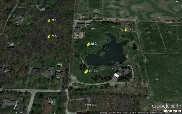 For lots 2, 3 and 4. Large beautiful rolling lots located on 2 acre lake accessed through a private drive. This is a small 6 lot subdivision on a dead end street with city water and sewer. Van Buren Schools.