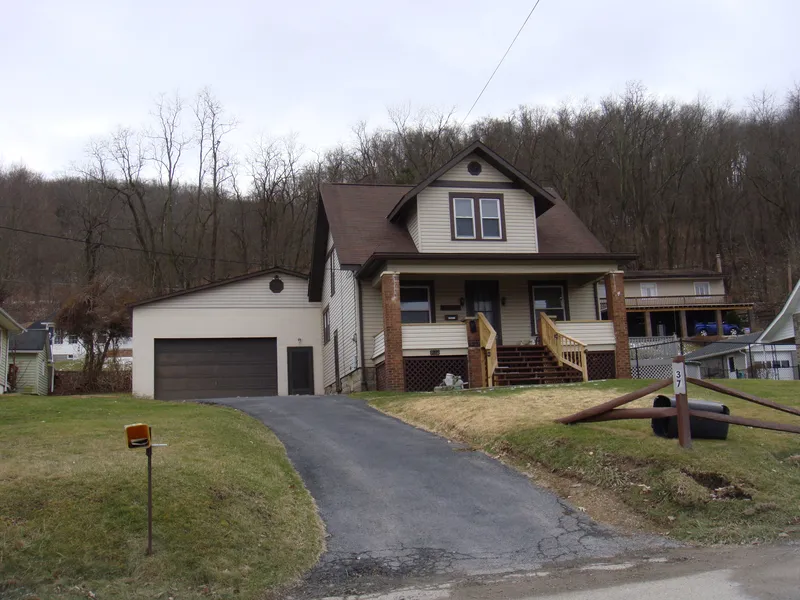 2-3 BR, 2 Bath Cape Cod Style home with great views from large covered front porch to relax & unwind on after a busy day . Home features kitchen + Formal DR, LR w/decorative fireplace & Craftsman style built ins. Sun room in rear of house. Bonus Room in Basement can be a 3rd BR & has separate access to exterior. 2.5 car attached garage. Roof approx 8 yrs; windows & doors approx 4 yrs., new hand railings on front porch. 1 year HOME WARRANTY INCLUDED.